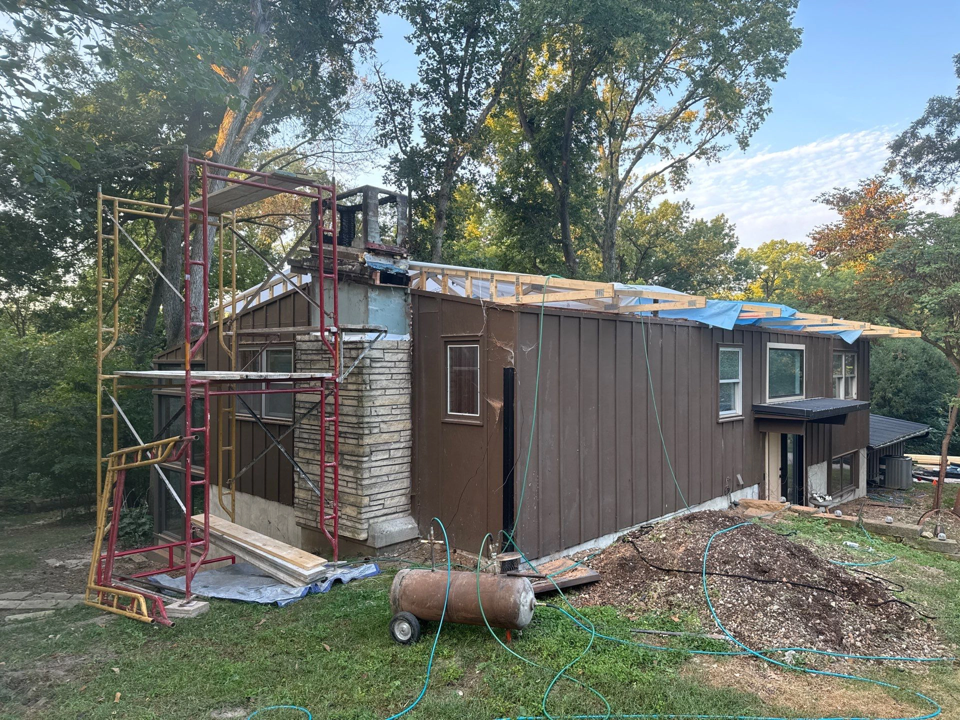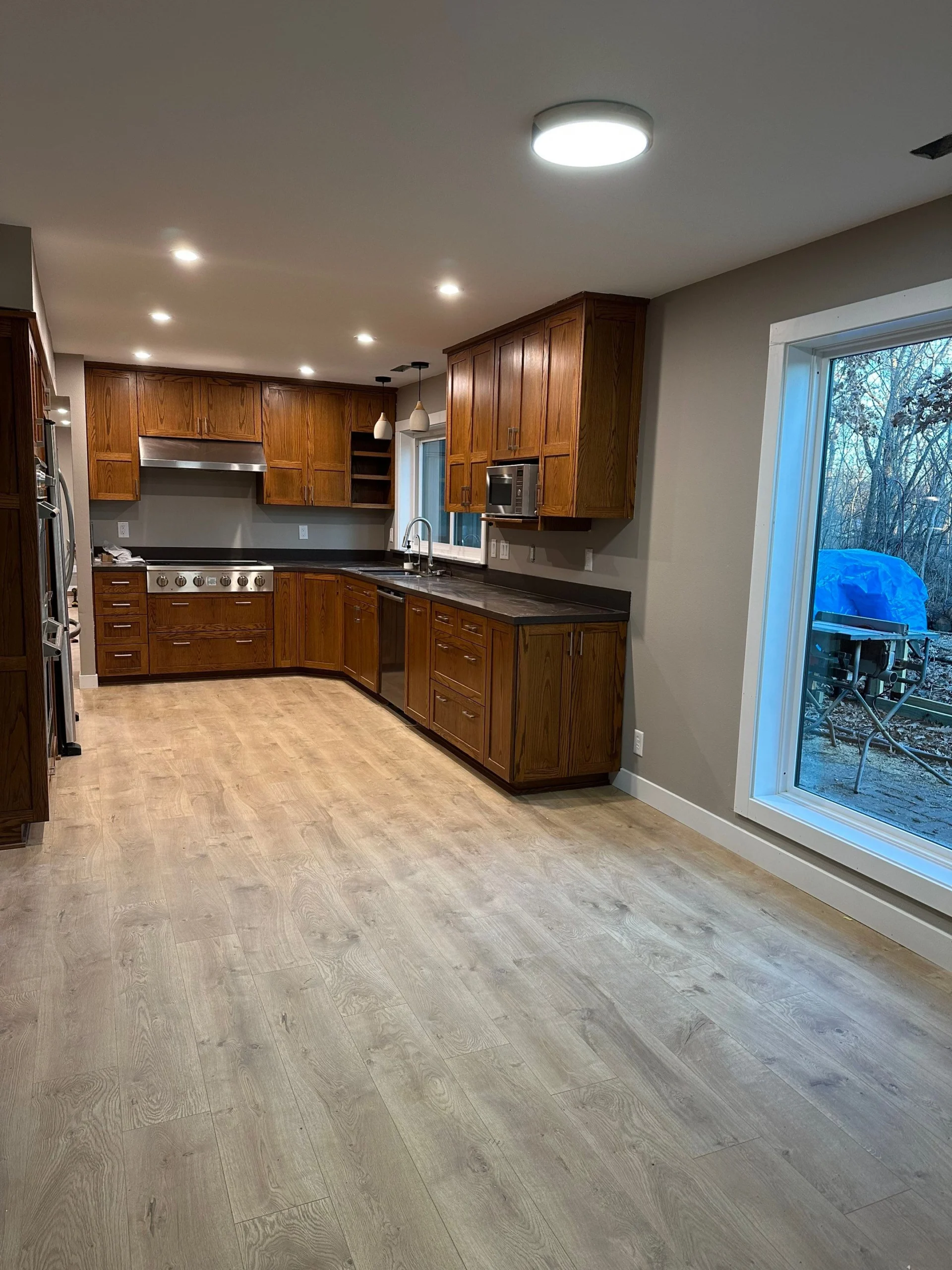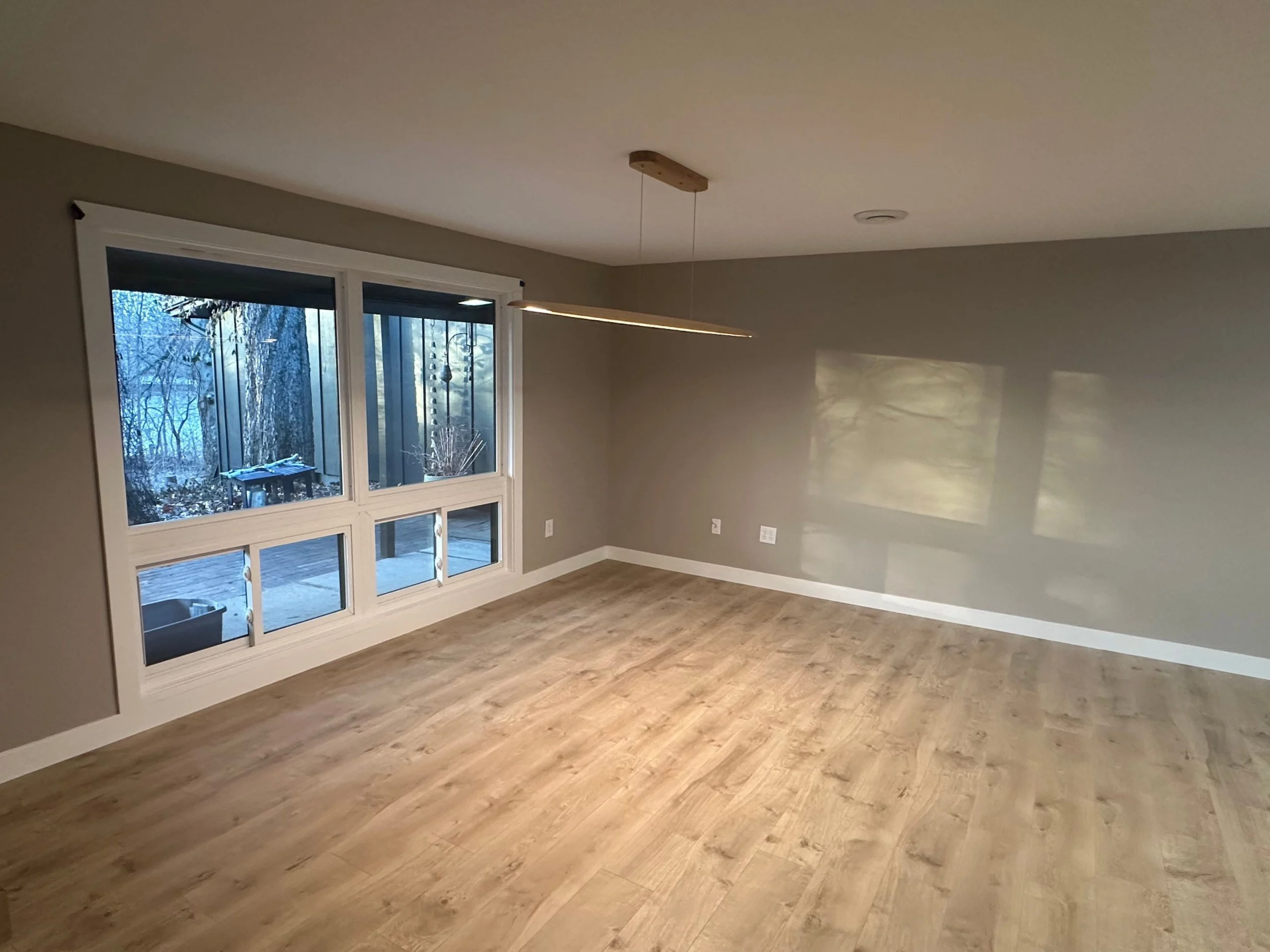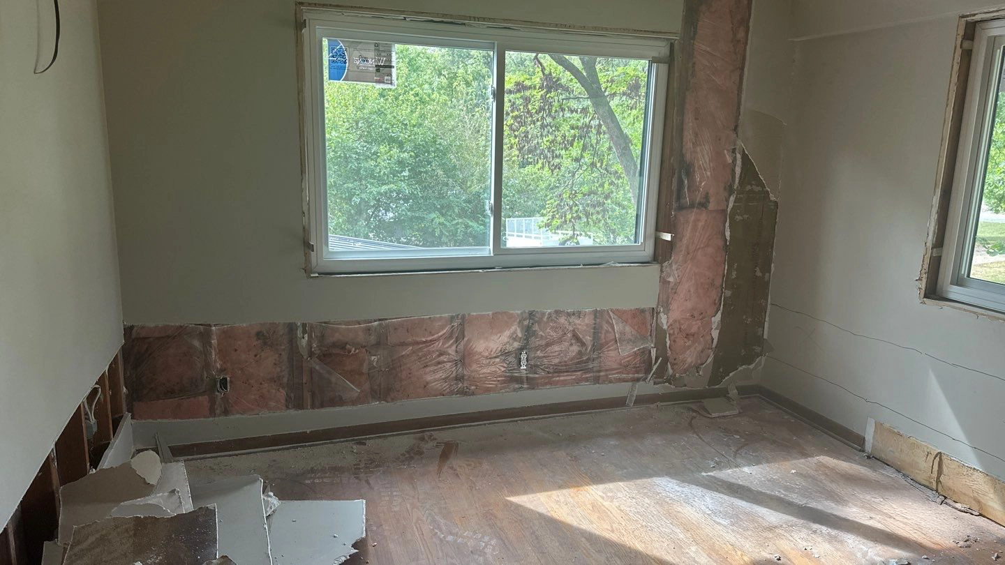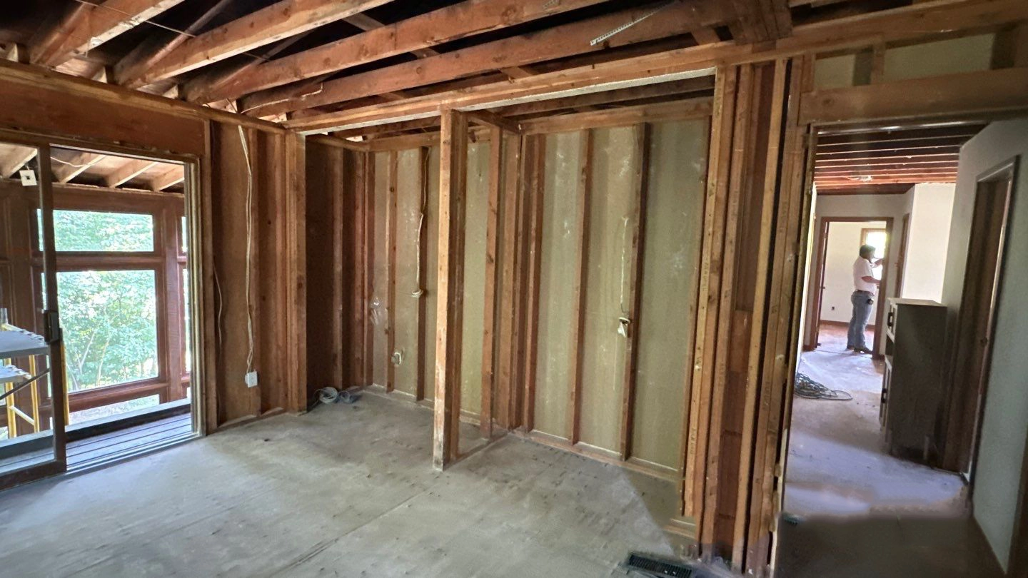 Project Background: This large fire restoration project involved a full structural rebuild. Our team removed all roof trusses and completely reconstructed the interior of the home from the ground up. We are now in the final stages, bringing everything together for a fully restored space.